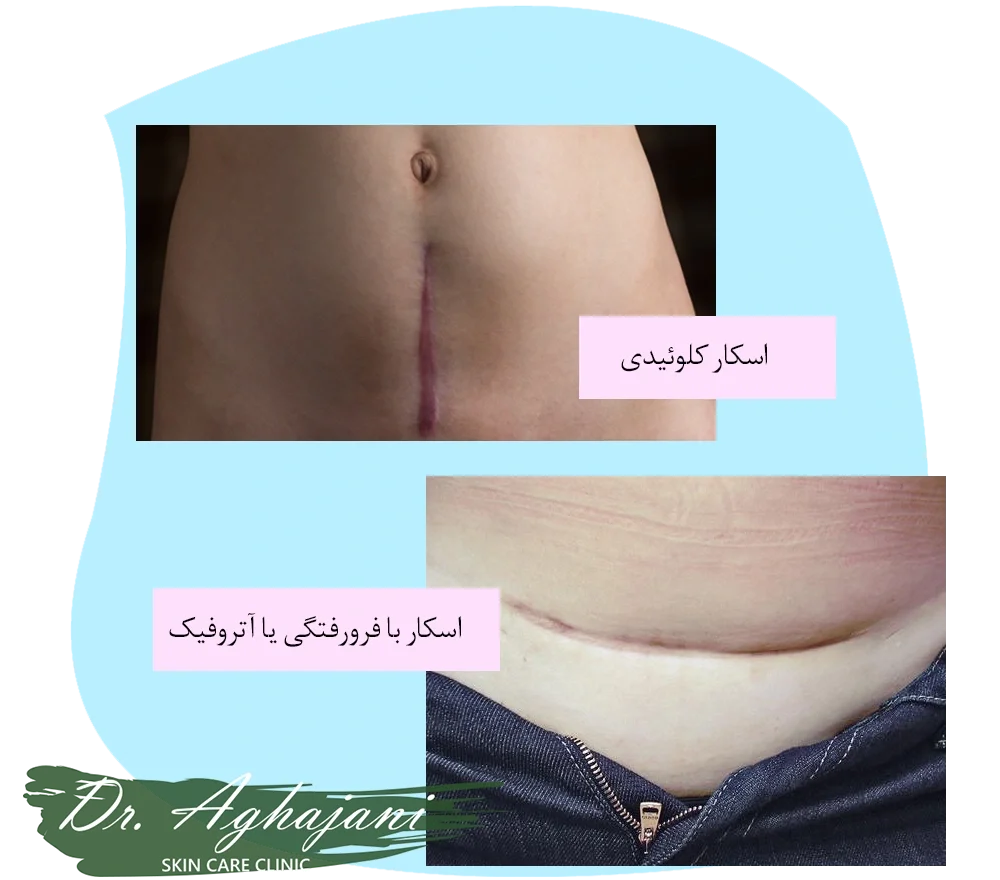 • نوع پوست: پوست‌های تیره‌تر مستعد تشکیل اسکارهای کلوئیدی یا هیپرتروفیک هستند. پوست‌های روشن‌تر معمولاً اسکارهای نازک‌تر یا فرورفته دارند.