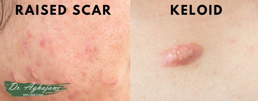 اسکارهای برجسته (هایپرتروفیک و کلوئید) به دلیل تولید بیش از حد کلاژن ایجاد شده و بیشتر در نواحی مانند سینه، کمر و فک دیده میشوند. برای درمان این اسکارها، از ترکیبی از روشهای تخصصی مانند لیزر PDL و Nd:YAG، کرایوتراپی و تزریق استروئید استفاده میشود تا حجم اسکار کاهشیافته و ظاهر پوست بهبود یابد.