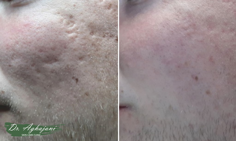 جای جوشهای فرورفته، بهویژه آنهایی که با چشم دیده میشوند، بسیار مقاوم هستند و نهتنها با لیزر بلکه با هیچ روش دیگری هم به طور صددرصد درمان نمیشوند؛ زیرا این نوع اسکارها به رویکردهای پیچیدهتری نیاز دارند. بااینحال، در کلینیک دکتر آقاجانی و با روش اختصاصی و نوآورانه ایشان، بیماران به سطحی از بهبودی نزدیک به صددرصد دست مییابند. این شیوه درمانی بهصورت انحصاری در این کلینیک ارائه میشود.