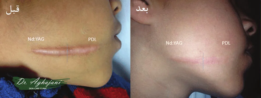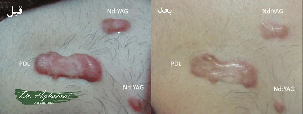 درمان اسکار با ترکیبی از لیزرهای Nd:YAG برای کاهش برجستگی و PDL برای کاهش تیرگی