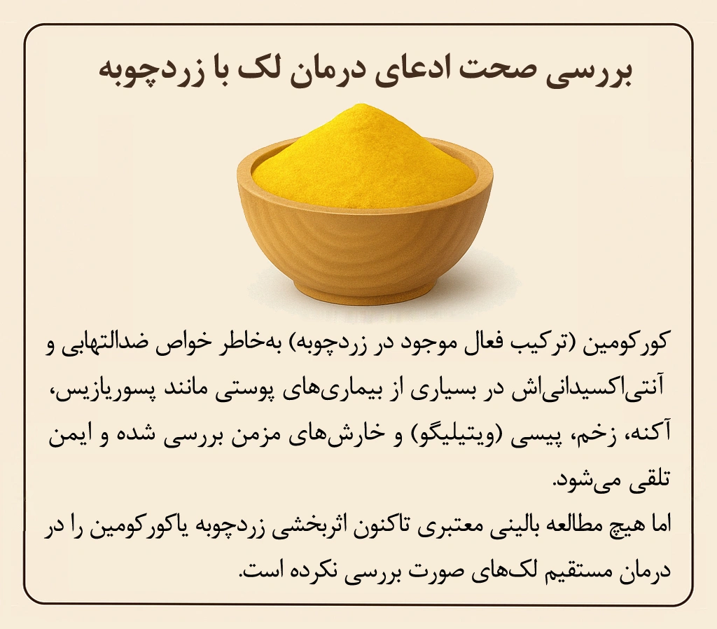 | لک دارویی یا کبدی | متوسط | قطع یا جایگزینی دارو + درمان مکمل و موضعی |